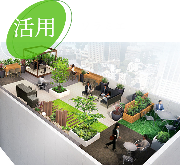 設計意図に合わせて厳選したアイテムをコーディネートし、メンテナンスやイベントなどアフターサービスまでサポートする屋上の上質な空間活用の最新手法。